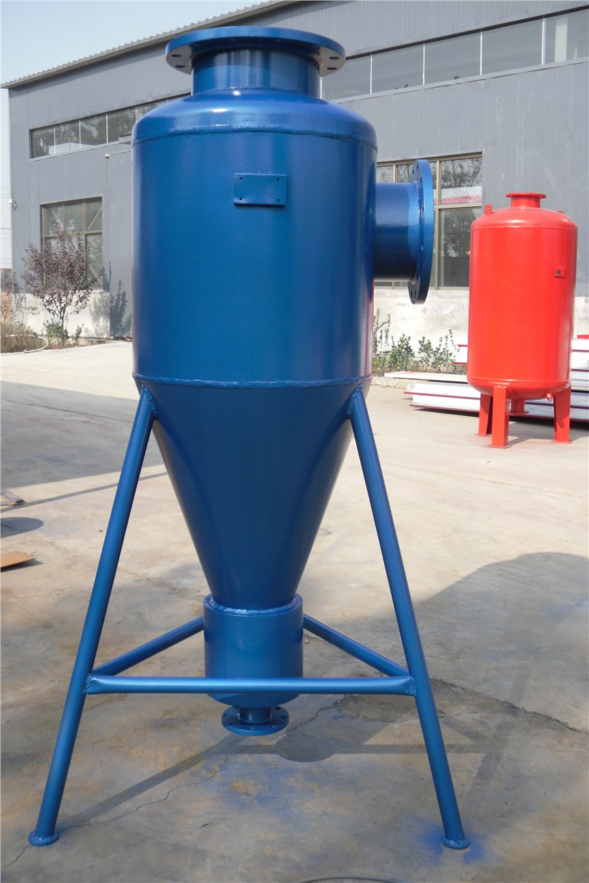 旋流除砂器是根據離心沉降和密度差的原理,當水流在一定的壓力下從除砂進水口以切向進入設備后,產生強烈的旋轉運動,由于砂和水密度不同,在離心力、向心力、浮力和流體曳力的共同作用下,使密度低的水上升,由出水口排出,密度大的砂粒由設備底部的排污口排出,從而達到除砂的目的。旋流除砂器集旋流與過濾為一體,在水處理領域實現除砂、降濁、固液分離等效果顯著。應用于水源熱泵、水處理、食品、醫藥等多個領域。